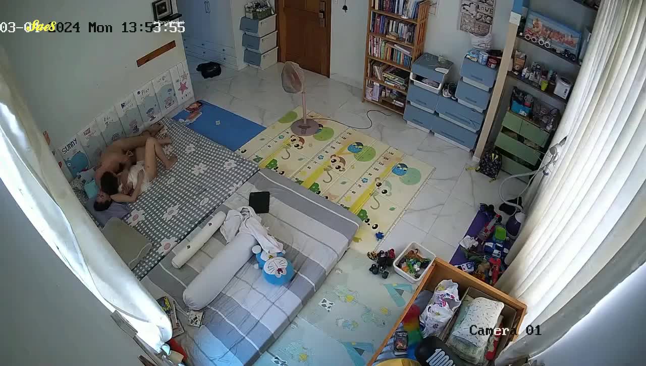 黑客破解家庭摄像头偷拍白天把孩子送去学校夫妻肆无忌惮的做爱